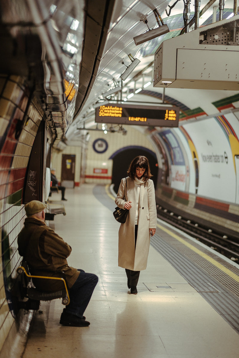 Photographing Hannah Bodenham and Ty Tooze using London (and the tube) as a backdrop for a social campaign used for REISS UK.